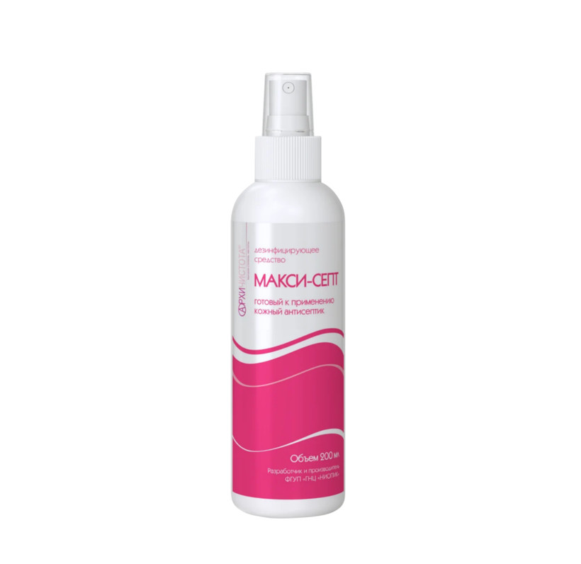 Макси-Септ 200 мл - готовый к применению кожный антисептик для гигиенической обработки рук, обработки рук хирургов, кожи операционного и инъекционного полей. Подходит для дезинфекции небольших по площади поверхностей