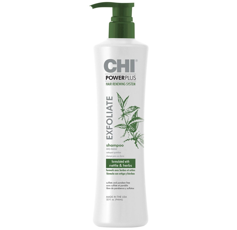 Шампунь CHI Power Plus Exfoliate Shampoo 946 мл CHIPPS32 - это профессиональное средство для ухода за волосами и кожей головы. Специально разработанный для всех типов волос, он обеспечивает глубокое очищение, детокс и отшелушивание благодаря натуральным компонентам.