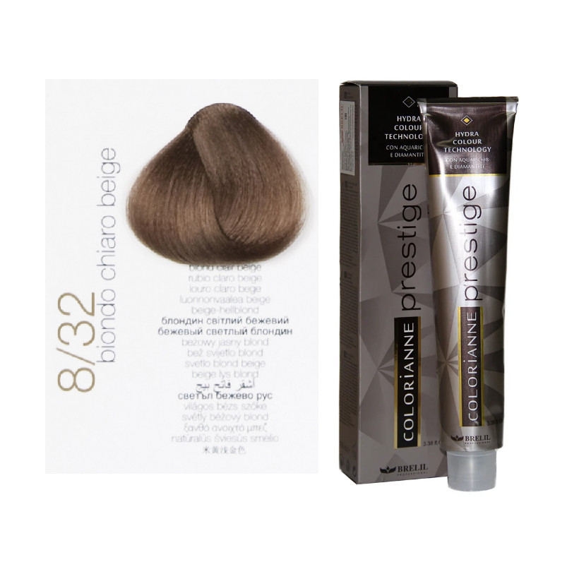 8/32 Перманентный краситель Brelil Colorianne Prestige, 100 мл/Светлый бежевый блонд