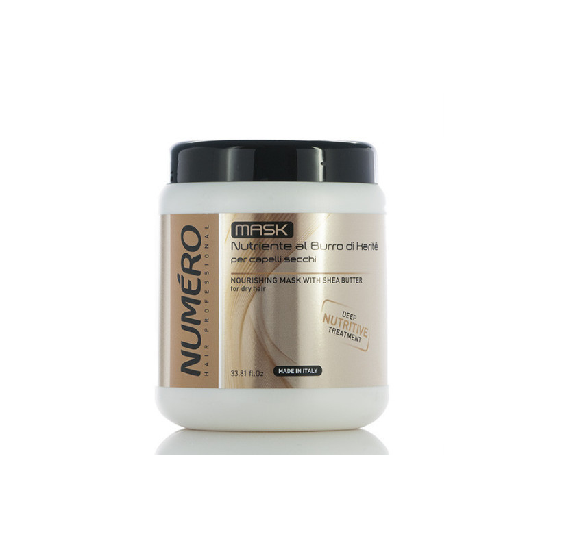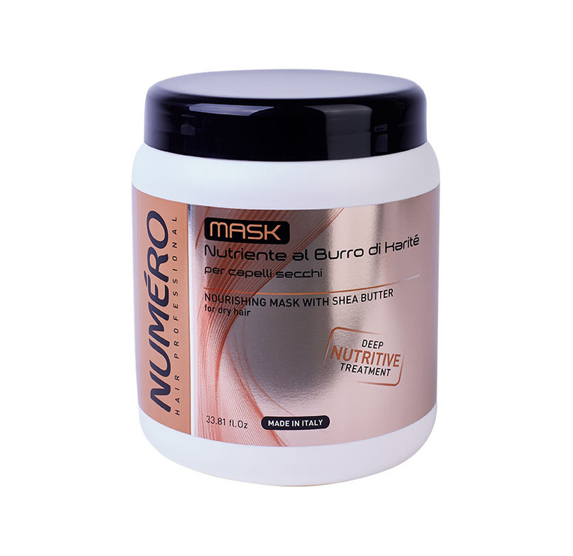 Питательная маска для сухих волос Brelil NUMERO с маслом карите, 1000 мл – профессиональное средство для ухода за волосами, которое обеспечивает интенсивное питание, увлажнение и восстановление сухих и тусклых волос, делая их более здоровыми и красивыми.