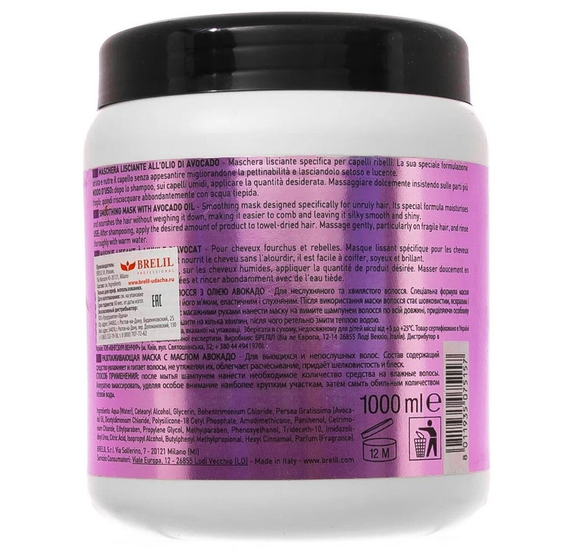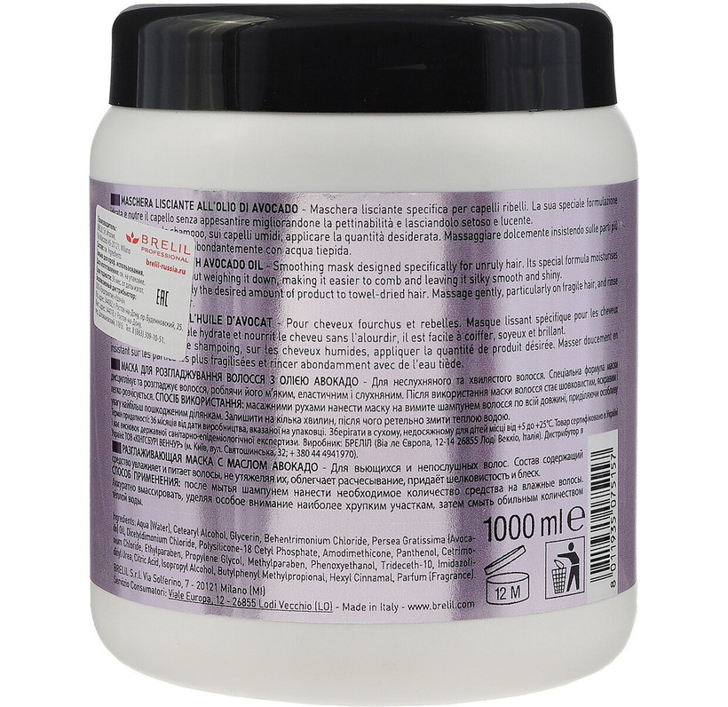 Маска разглаживающая Brelil NUMERO с маслом авокадо для пушистых и непослушных, 1000 мл