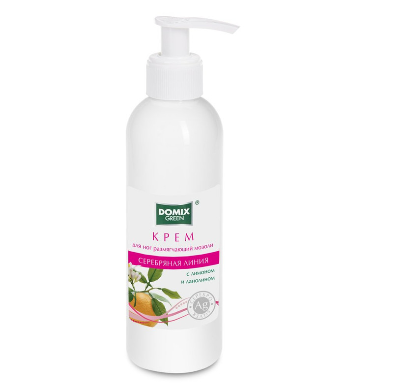 DOMIX GREEN Крем для ног, размягчающий мозоли с лимоном, ланолином и наносеребром, 200 мл