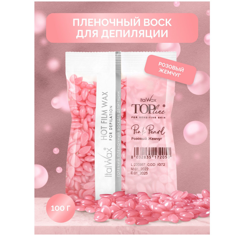 Воск горячий (пленочный) ITALWAX Top Line Pink Pearl (Розовый жемчуг) гранулы 100гр №30 – это надежный и эффективный выбор для тех, кто ценит качество и комфорт в процессе восковой эпиляции.