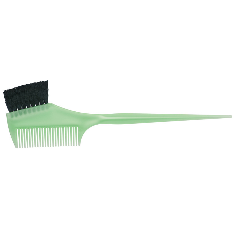 Оригинальная кисть для окрашивания DEWAL JPP049 green с черной щетиной, предназначена для профессионального окрашивания, выполнена из высококачественных материалов. Щетина имеет удобную волнистую форму, что позволит наносить краску на волосы более равномерно. Щетина кисти широкая – 55 мм. Она выполнена из качественной искусственной щетины и благодаря узкой форме краска может быть равномерно распределена на волосы. Форма корпуса кисти выполнена в классическом стиле с заостренным кончиком ручки, которая позволяет равномерно разделить пряди для окрашивания. Инструмент совмещает в себе и кисть, и расческу, что значительно облегчает процесс окраски. Кисть в оригинальном зеленом цвете понравится любому парикмахеру, поскольку она очень легкая, в то же время удобна в использовании и изготовлена из качественных материалов.