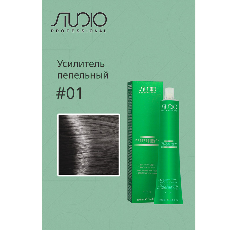 S 01 усилитель пепельный, крем-краска для волос с экстрактом женьшеня и рисовыми протеинами Studio Professional, 100 мл