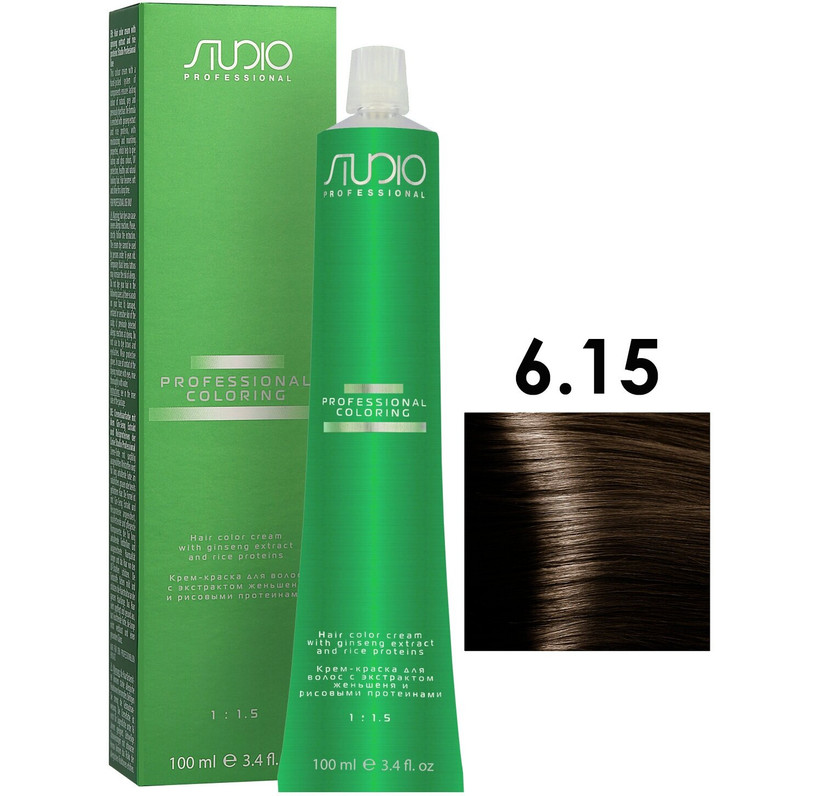 S 6.15 темный пепельно-махагоновый блонд крем-краска для волос с экстрактом женьшеня и рисовыми протеинами Studio Professional, 100 мл