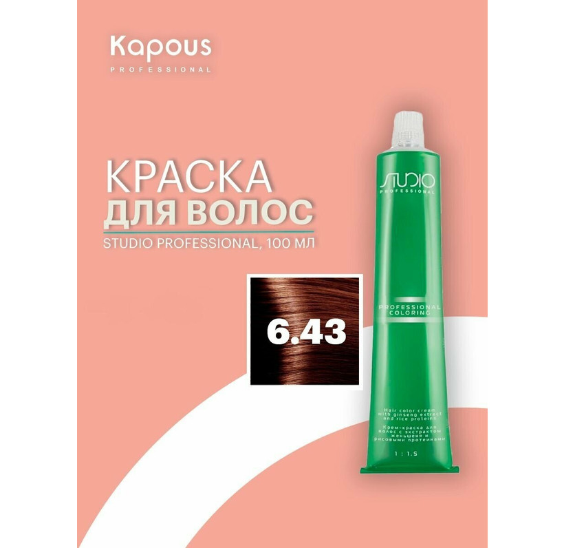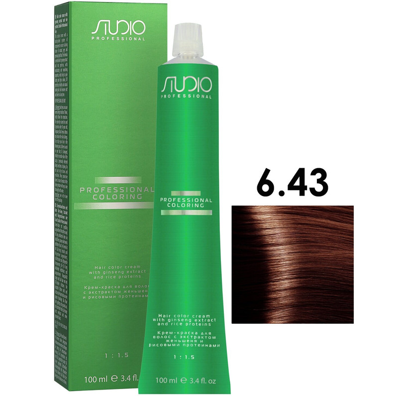 S 6.43 темный медно-золотой блонд крем-краска для волос с экстрактом женьшеня и рисовыми протеинами Studio Professional, 100 мл