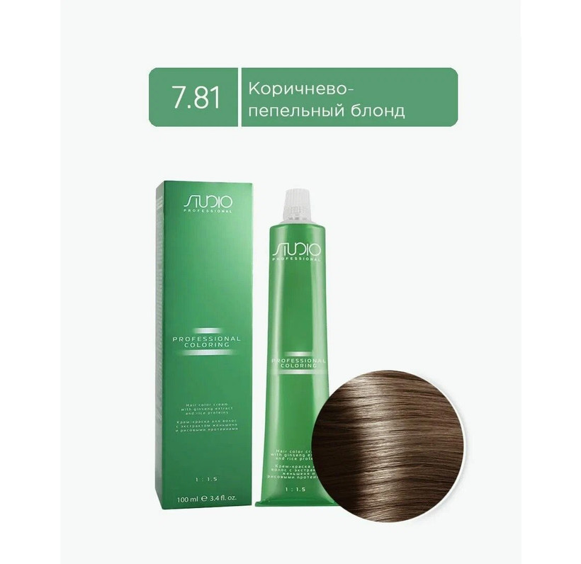 S 7.81 коричнево-пепельный блонд крем-краска для волос с экстрактом женьшеня и рисовыми протеинами Studio Professional, 100 мл