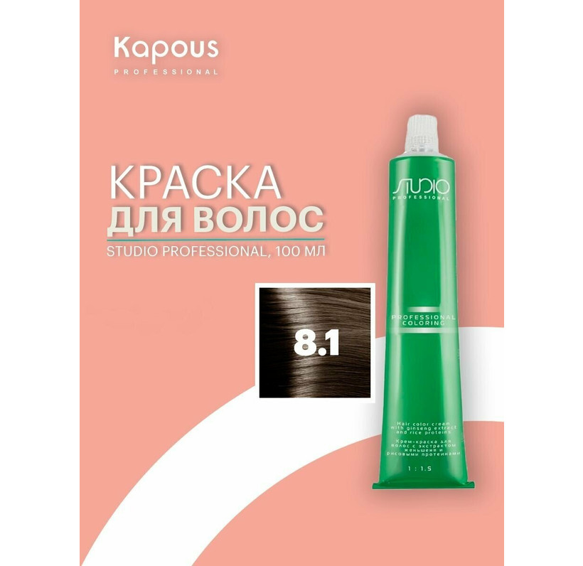 S 8.1 светлый пепельный блонд крем-краска для волос с экстрактом женьшеня и рисовыми протеинами Studio Professional, 100 мл