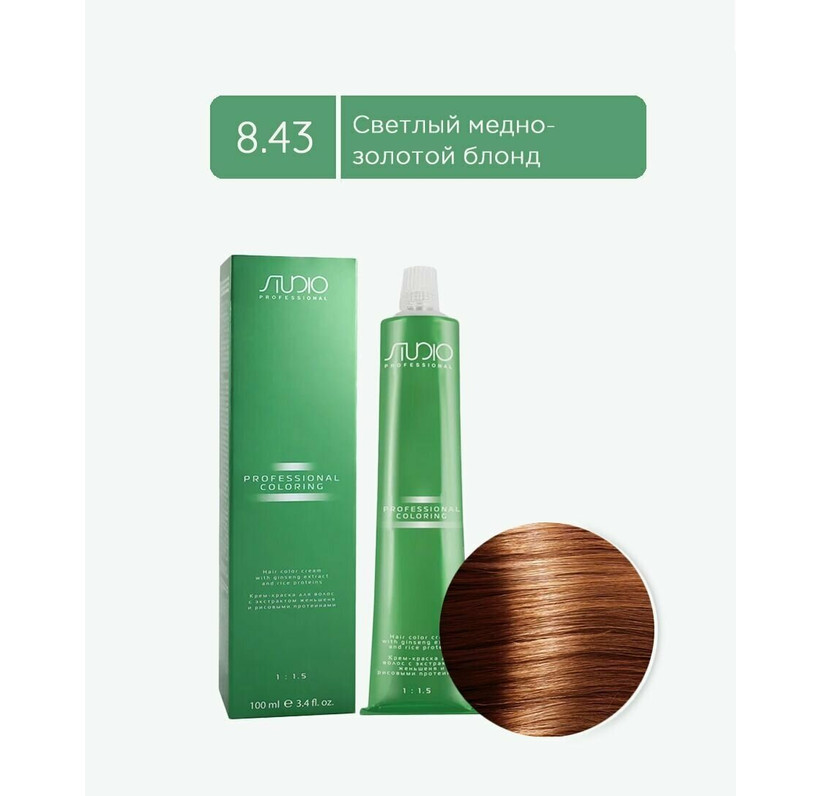 S 8.43 светлый медно-золотой блонд крем-краска для волос с экстрактом женьшеня и рисовыми протеинами Studio Professional, 100 мл
