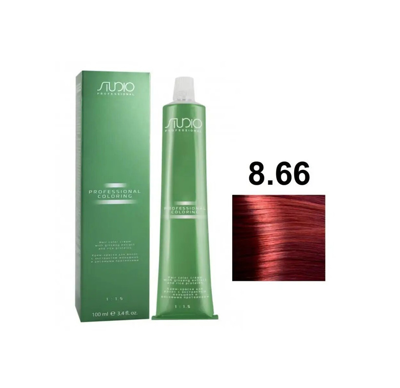 S 8.66 интенсивный светло-красный блонд крем-краска для волос с экстрактом женьшеня и рисовыми протеинами Studio Professional, 100 мл