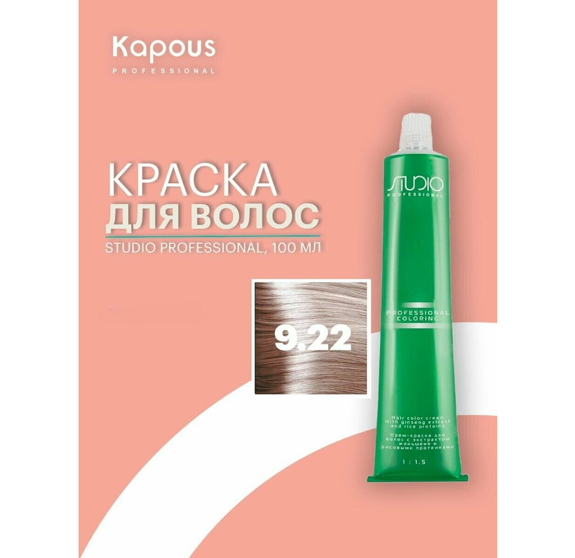 S 9.22 очень светлый интенсивный фиолетовый блонд крем-краска для волос с экстрактом женьшеня и рисовыми протеинами Studio Professional, 100 мл