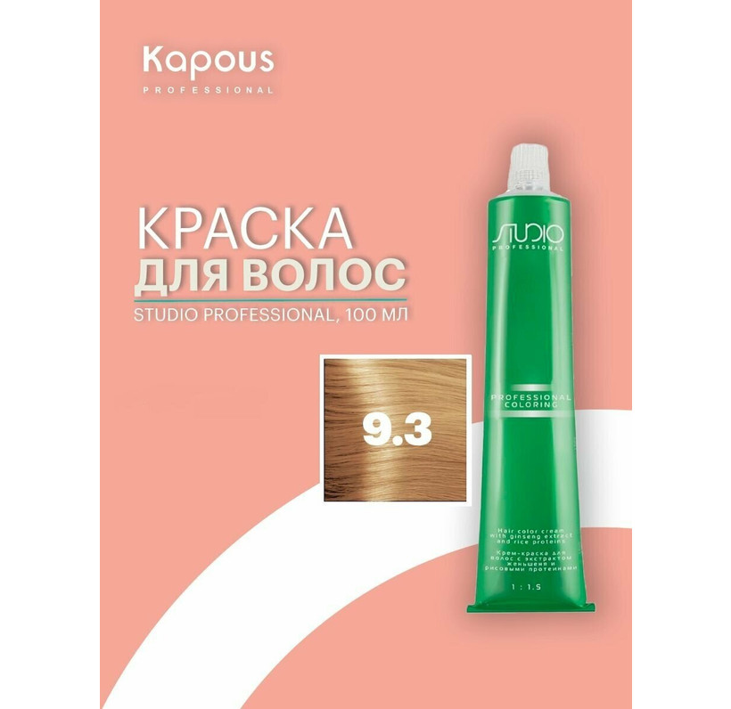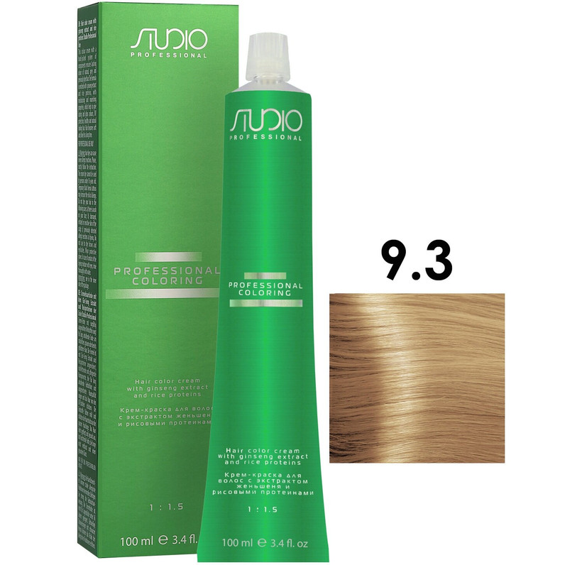 S 9.3 очень светлый золотой блонд крем-краска для волос с экстрактом женьшеня и рисовыми протеинами Studio Professional, 100 мл