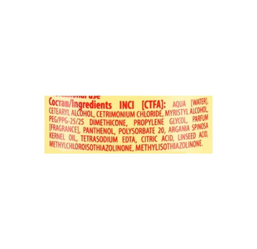 aqua (water), cetearyl alcohol, cetrimonium chloride, myristyl alcohol, PEG/PPG-25/25 dimethicone, propylene glycol, parfum (fragrance), panthenol, polysorbate 20, argania spinosa kernel oil, tetrasodium EDTA, citric acid, linseed acid, methylchloroisothiazolinone, methylisothiazolinone