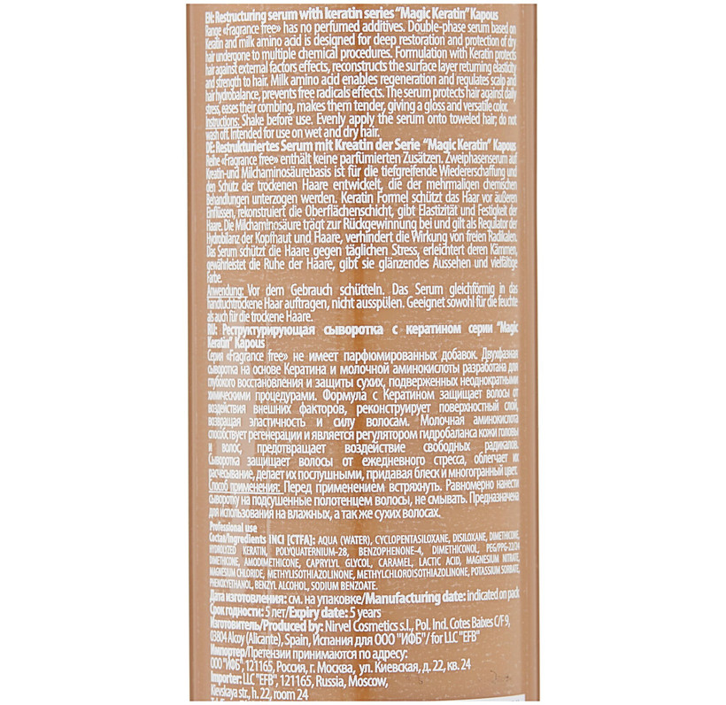 Реструктурирующая сыворотка с кератином Kapous "Magic Keratin", 200 мл