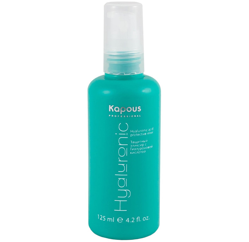 Защитный эликсир с Гиалуроновой кислотой Kapous "Hyaluronic acid" выпускается в удобной упаковке-бутылке объемом 125 мл. В комплекте идет дозатор, что делает использование средства еще более комфортным.