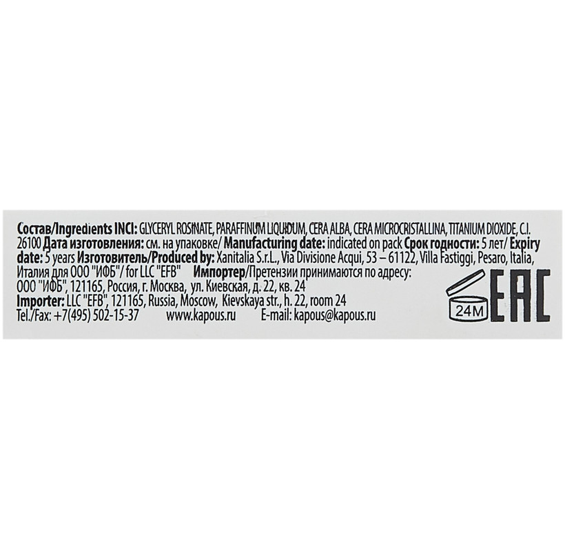 | Активный ингредиент | воск,азулен |