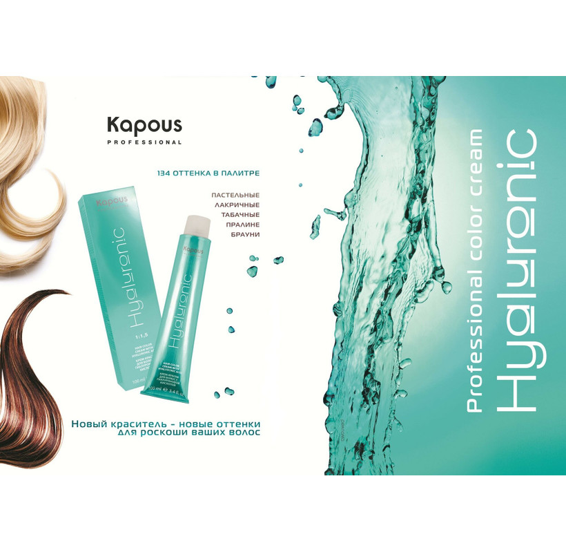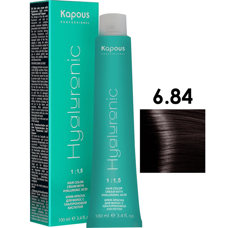 HY 6.84 Темный блондин брауни Крем-краска для волос Kapous с Гиалуроновой кислотой, 100 мл