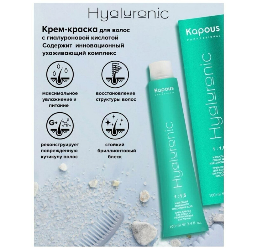 HY 1.0 Черный Крем-краска для волос Kapous с Гиалуроновой кислотой, 100 мл