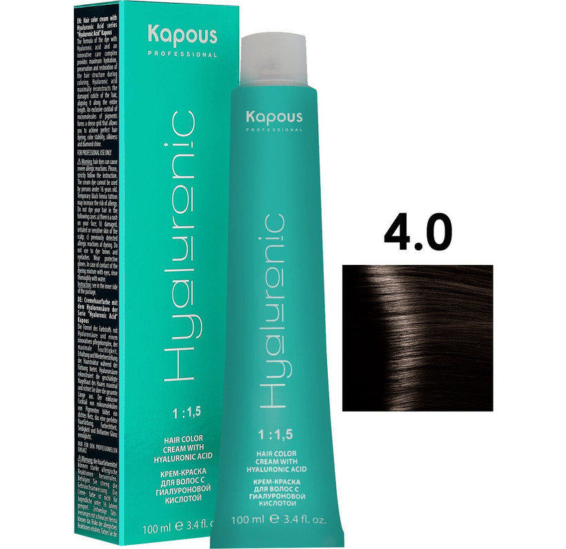 HY 4.0 Коричневый Крем-краска для волос Kapous с Гиалуроновой кислотой, 100 мл