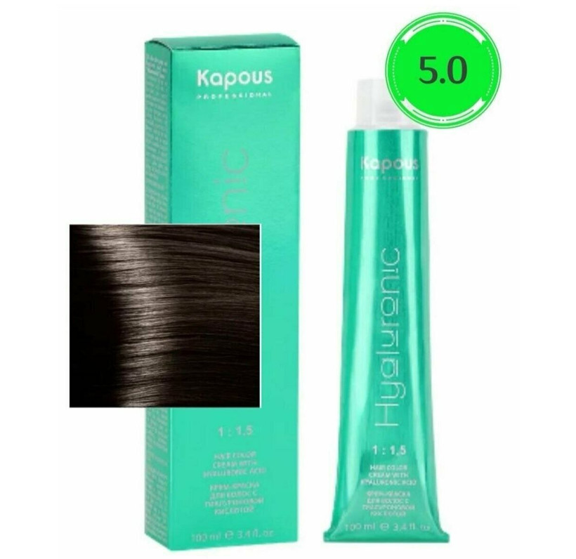 HY 5.0 Светлый коричневый Крем-краска для волос Kapous с Гиалуроновой кислотой, 100 мл