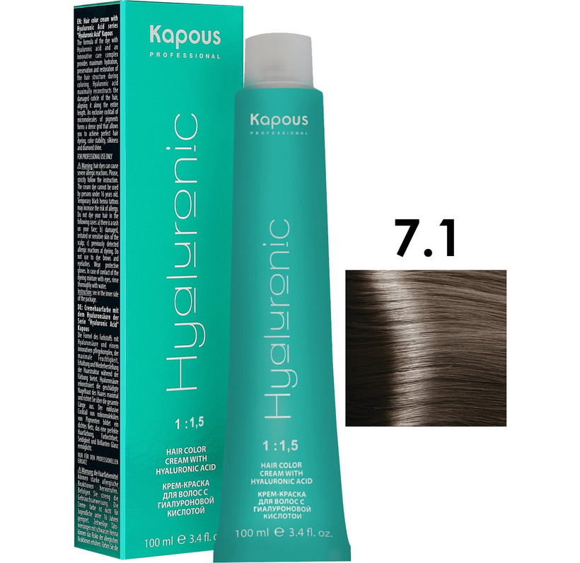 HY 7.1 Блондин пепельный Крем-краска для волос Kapous с Гиалуроновой кислотой, 100 мл
