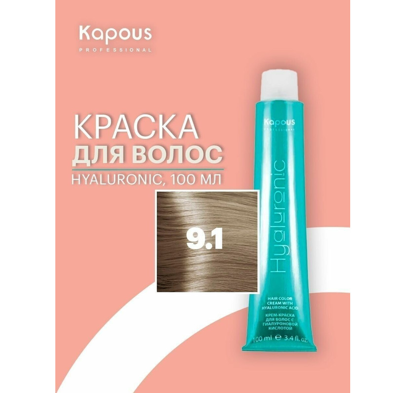 HY 9.1 Очень светлый блондин пепельный Крем-краска для волос Kapous с Гиалуроновой кислотой, 100 мл