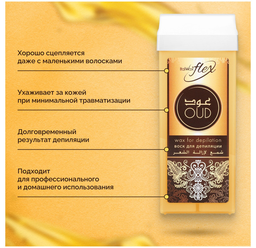 Воск ITALWAX Flex в картридже Уд прошел дерматологические испытания и имеет приятный базовый аромат без отдушки.