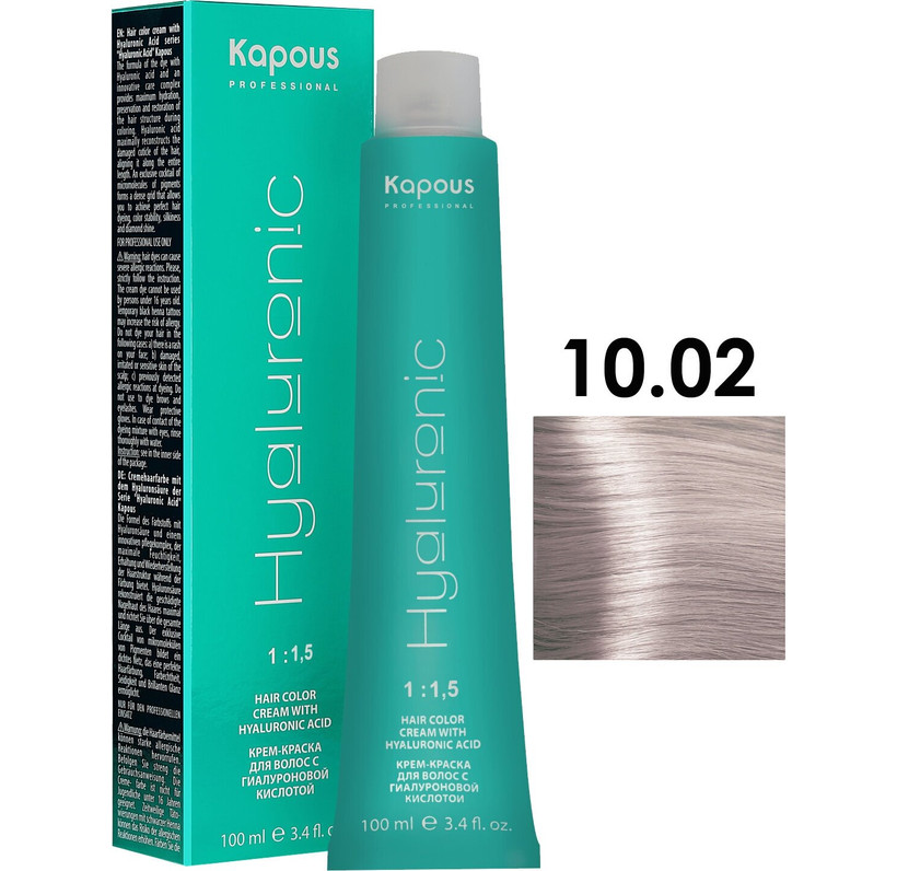 HY 10.02 Платиновый блондин прозрачный фиолетовый Крем-краска для волос Kapous с Гиалуроновой кислотой, 100 мл