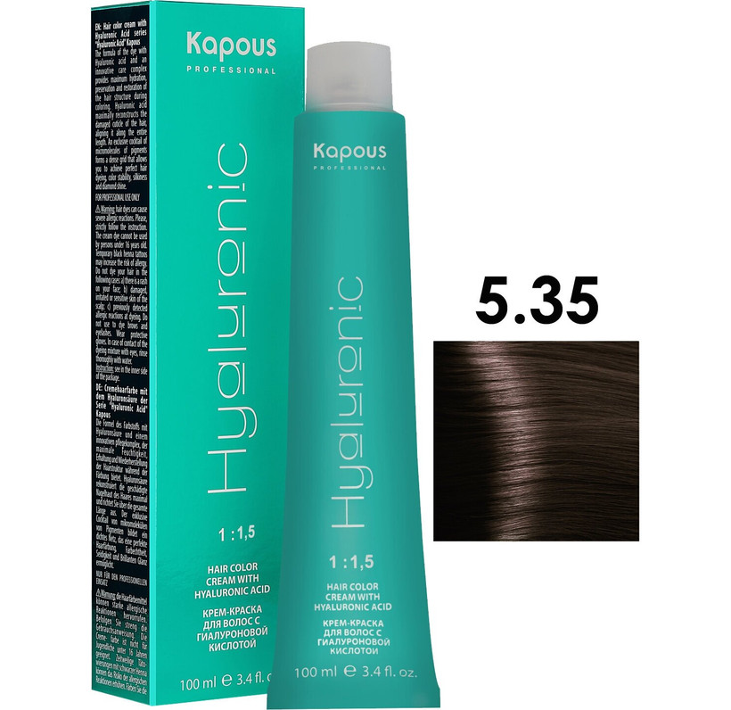 HY 5.35 Светлый коричневый каштановый Крем-краска для волос Kapous с Гиалуроновой кислотой, 100 мл