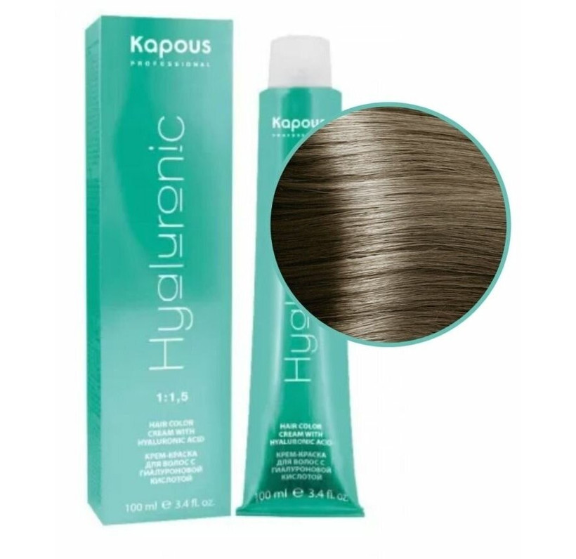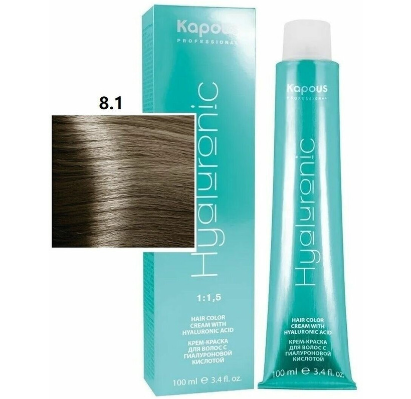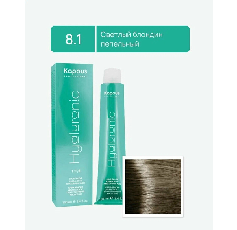 HY 8.1 Светлый блондин пепельный Крем-краска для волос Kapous с Гиалуроновой кислотой, 100 мл