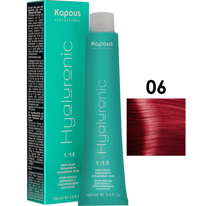 HY 06 Усилитель красный Крем-краска для волос Kapous с Гиалуроновой кислотой, 100 мл