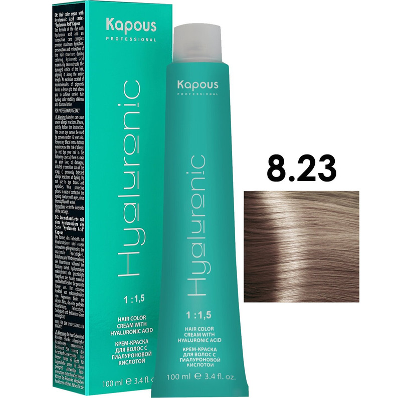HY 8.23 Светлый блондин перламутровый Крем-краска для волос Kapous с Гиалуроновой кислотой, 100 мл
