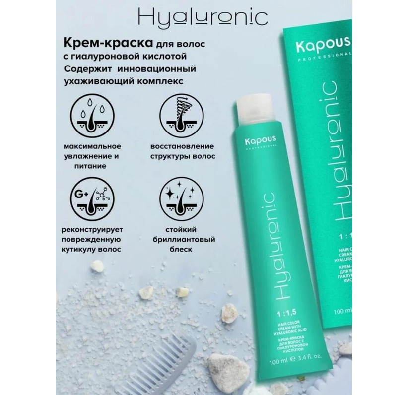 HY 9.012 Очень светлый блондин прозрачный табачный Крем-краска для волос Kapous с Гиалуроновой кислотой, 100 мл
