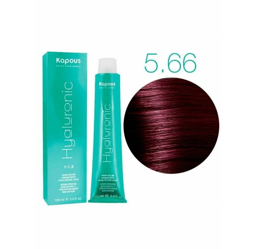 HY 5.66 Светлый коричневый красный интенсивный Крем-краска для волос Kapous с Гиалуроновой кислотой, 100 мл
