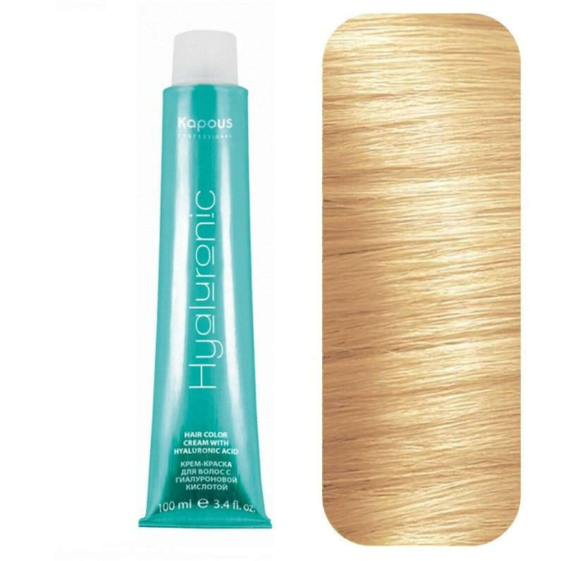 HY 10.34 Платиновый блондин золотистый медный Крем-краска для волос Kapous с Гиалуроновой кислотой, 100 мл