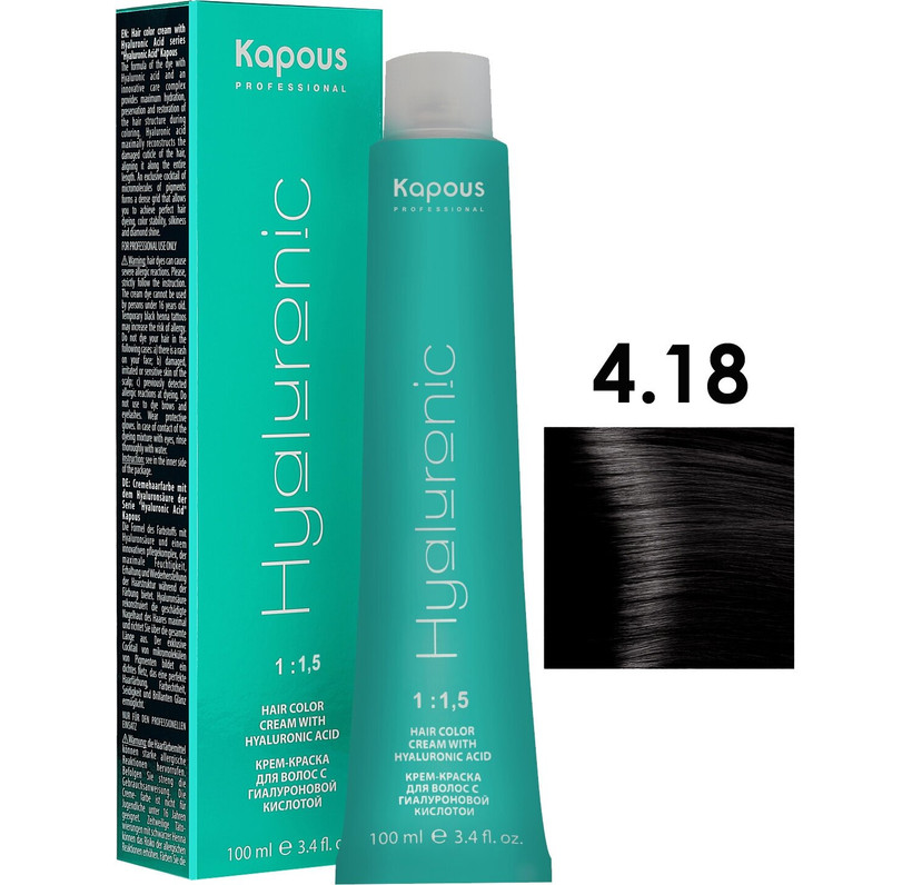 HY 4.18 Коричневый лакричный Крем-краска для волос Kapous с Гиалуроновой кислотой, 100 мл