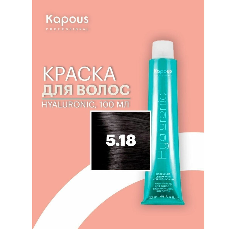 HY 5.18 Светлый коричневый лакричный Крем-краска для волос Kapous с Гиалуроновой кислотой, 100 мл
