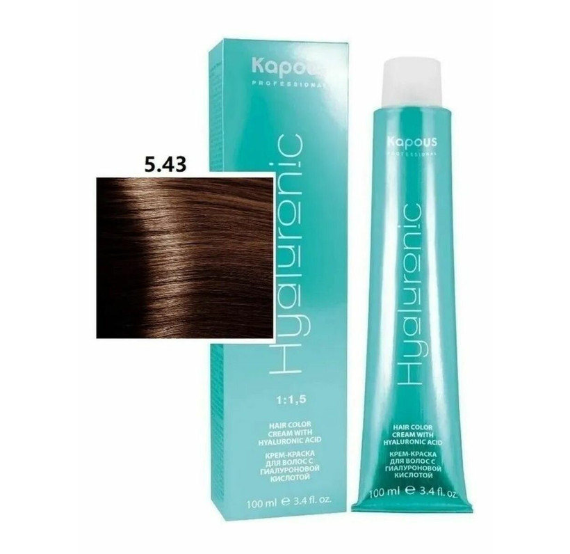 HY 5.43 Светлый коричневый медный золотистый Крем-краска для волос Kapous с Гиалуроновой кислотой, 100 мл