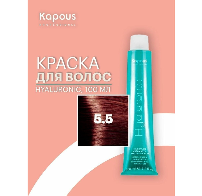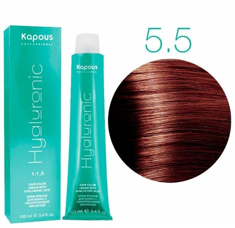 HY 5.5 Светлый коричневый махагоновый Крем-краска для волос Kapous с Гиалуроновой кислотой, 100 мл