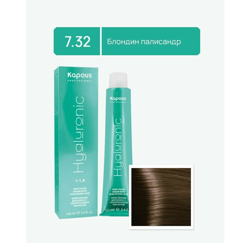HY 7.32 Блондин палисандр Крем-краска для волос Kapous с Гиалуроновой кислотой, 100 мл
