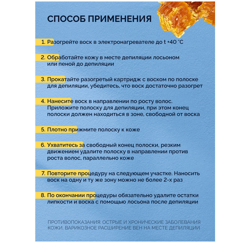 Воск протестирован дерматологически и подходит для чувствительной кожи.