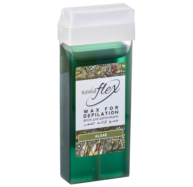 Воск ITALWAX Flex в картридже Водоросли имеет зеленый цвет и содержит экстракт ламинарии, который известен своими увлажняющими свойствами.