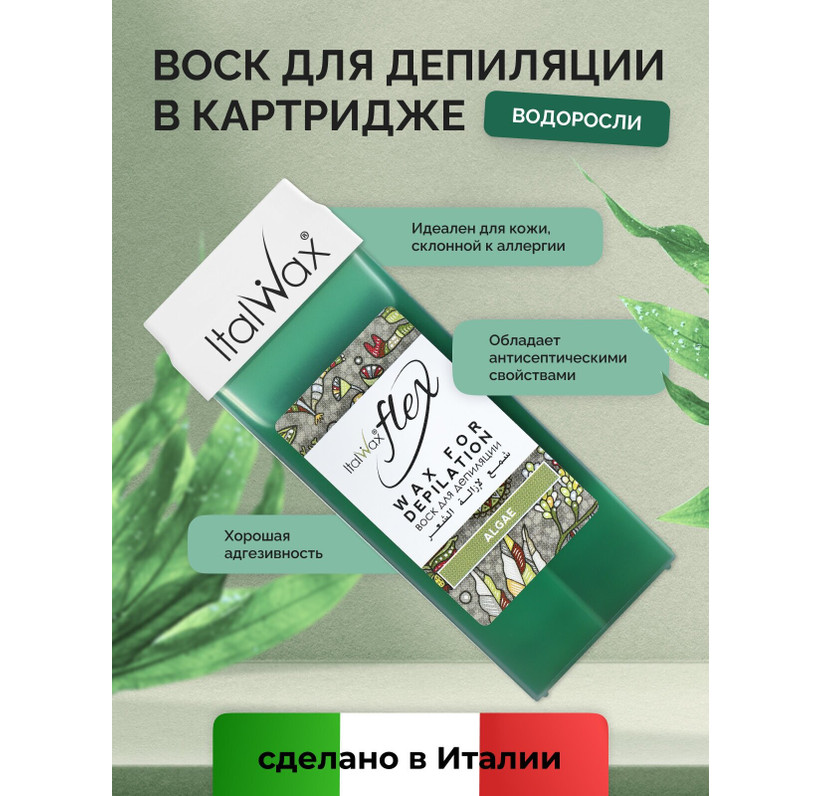 Воск ITALWAX Flex в картридже Водоросли - это надежное и эффективное средство для восковой эпиляции, которое обеспечивает гладкую кожу и комфорт на протяжении всего процесса.