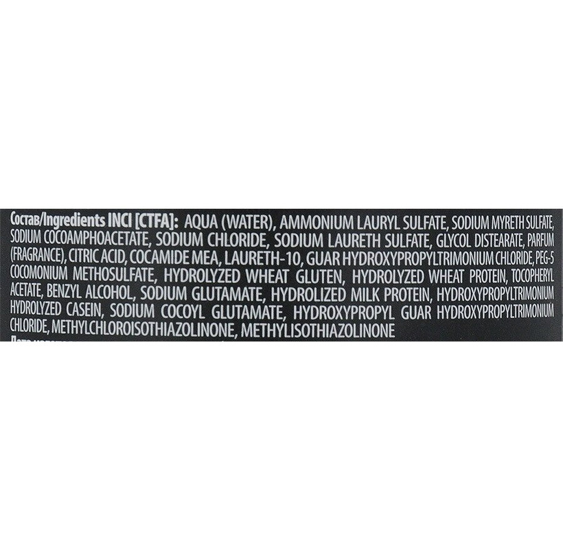 aqua (water), ammonium lauryl sulfate, sodium myreth sulfate, sodium cocoamphoacetate, parfum, sodium chloride, sodium laureth sulfate, glycol distearate, citric acid, guar hydroxypropyltrimonium chloride, cocamide mea, laureth-10, peg-5 cocomonium methosulfate, hydrolyzed wheat gluten, hydrolyzed wheat protein, tocopheryl acetate, benzyl alcohol, sodium glutamate, hydrolyzed milk protein, casein, sodium cocoyl glutamate, hydropropyl guar hydroxypropyltrimonium chloride, methylchloroisothiazolinone, methylisothiazolinone