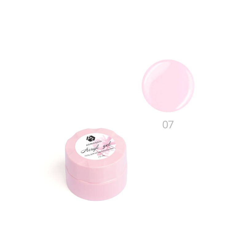 Акригель для наращивания ногтей ADRICOCO №07 камуфлирующий нежный розовый, 10 мл