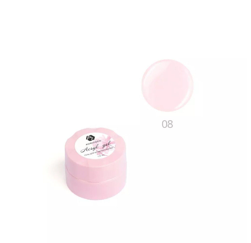Акригель для наращивания ногтей ADRICOCO №08 камуфлирующий классический розовый, 10 мл