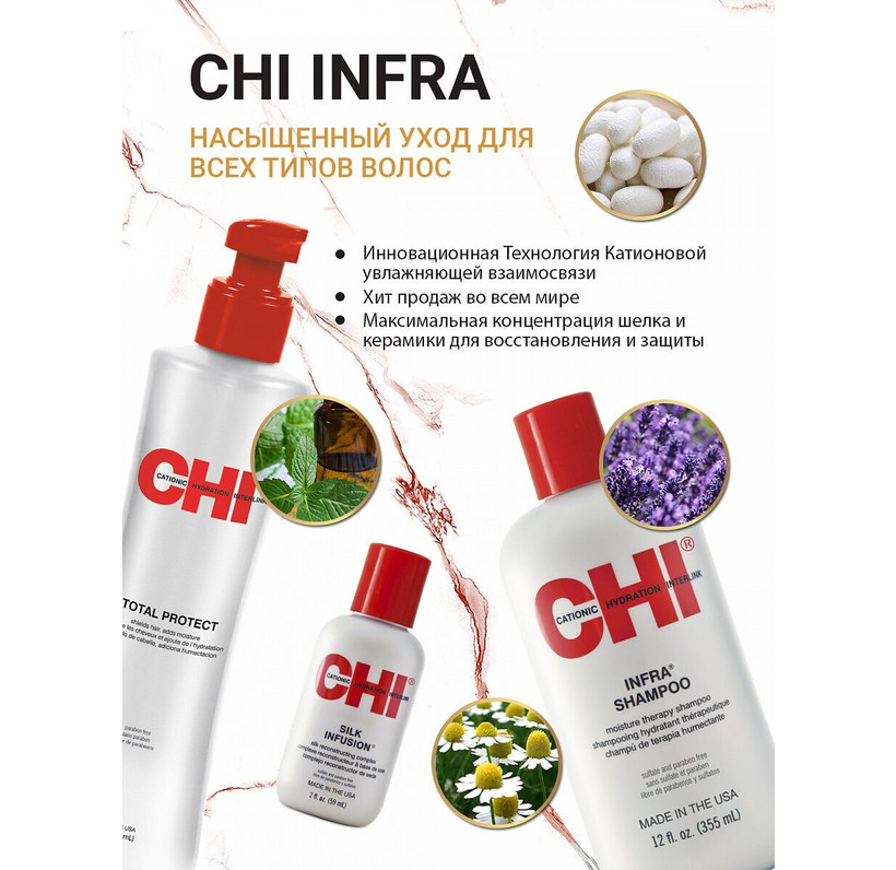Кондиционер CHI INFRA не тестируется на животных и подходит для ежедневного применения.