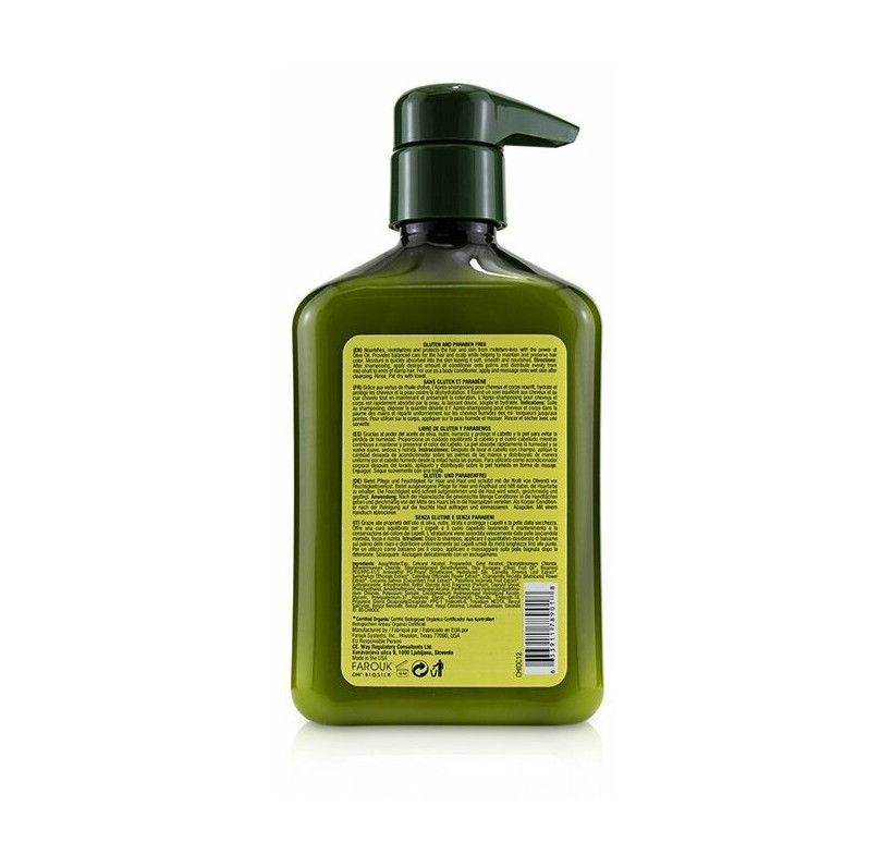 Кондиционер CHI OLIVE ORGANICS не содержит парабенов и сульфатов, что делает его безопасным для использования. Он также нейтрализует статическое электричество и восстанавливает волосы, придавая им блеск, объем и мягкость.