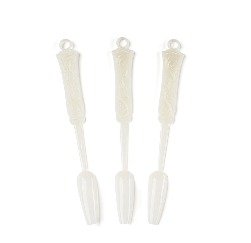 Палитра-веер из плотного пластика с 24 типсами используется для демонстрации декоративного материала (геля, гель-лака, акрила или классического лака) до нанесения его на ноготь. Готовая качественная выкраска не только позволит сэкономить время мастера и клиента по подбору желаемого цвета или варианта готового дизайна, но и даст реальное представление о глубине и красоте оттенка. Также с помощью данного аксессуара удобно систематизировать хранение по цветам, фактурам и эффектам. За счет надежного крепления палочек с типсами к основанию-кольцу палитру можно долго использовать в работе.